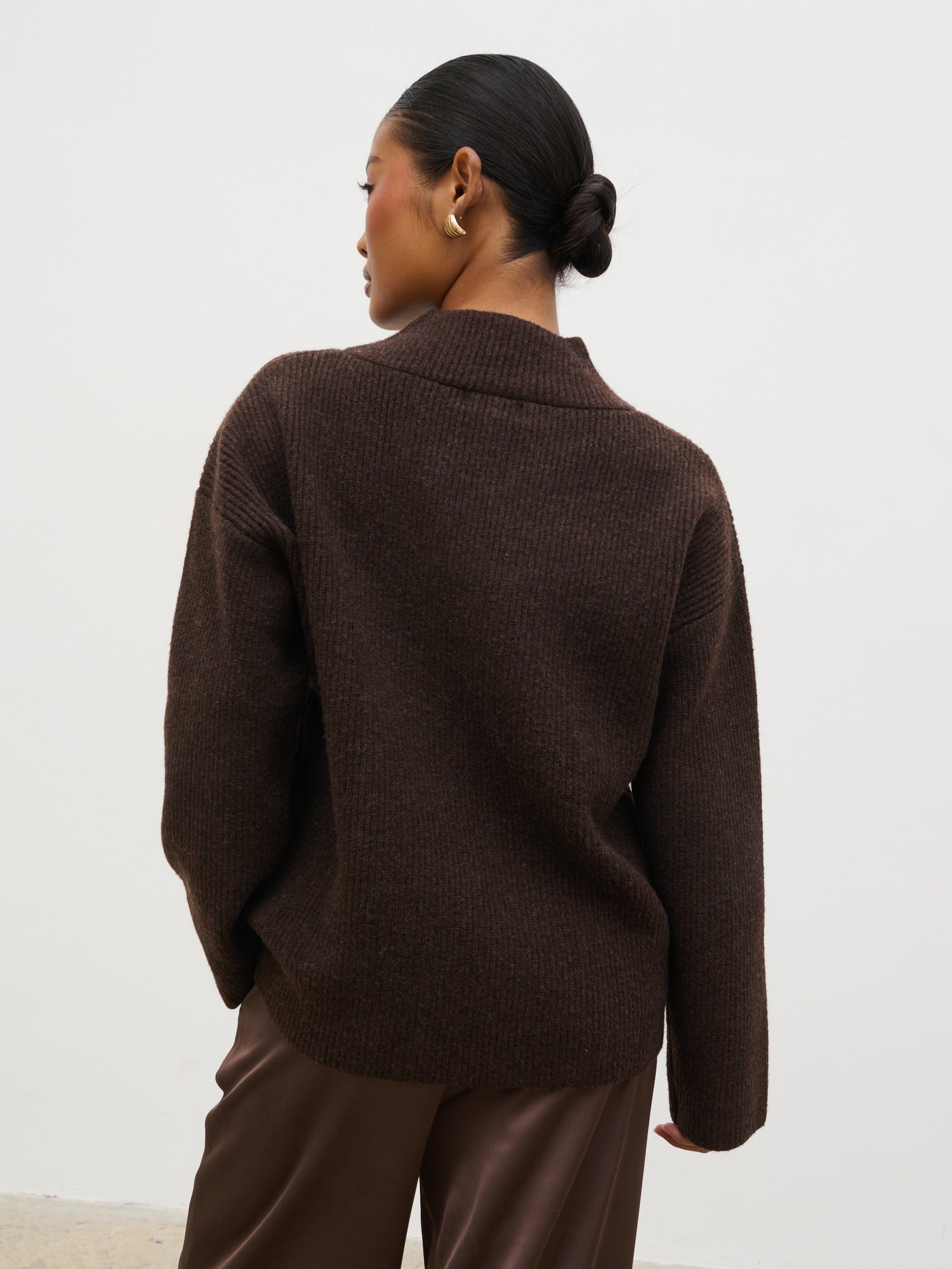 Briana Chunky V-Neck Knit Jumper - Chocolate