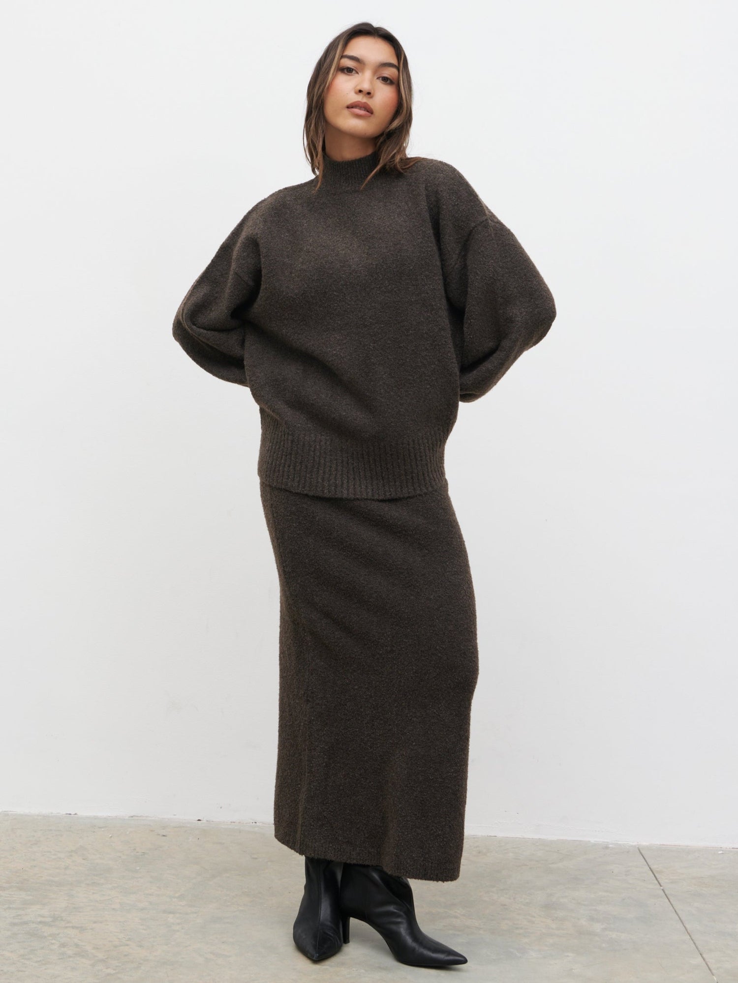 Camille Balloon Sleeve Knit Jumper - Bark - XS is backordered and will ship as soon as it is back in stock.